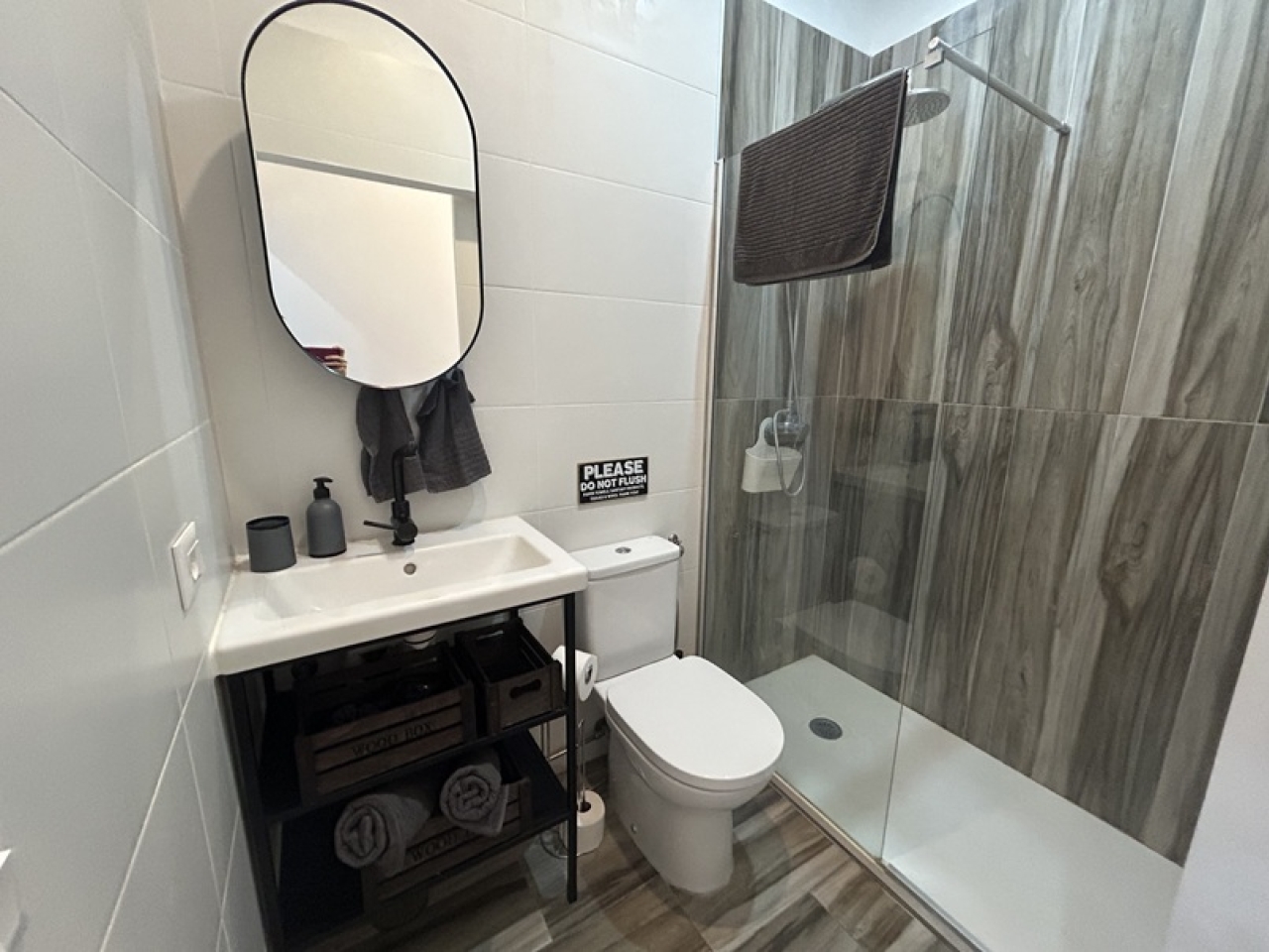 Ground floor, one bed apartment with driveway and terrace giving sea views.