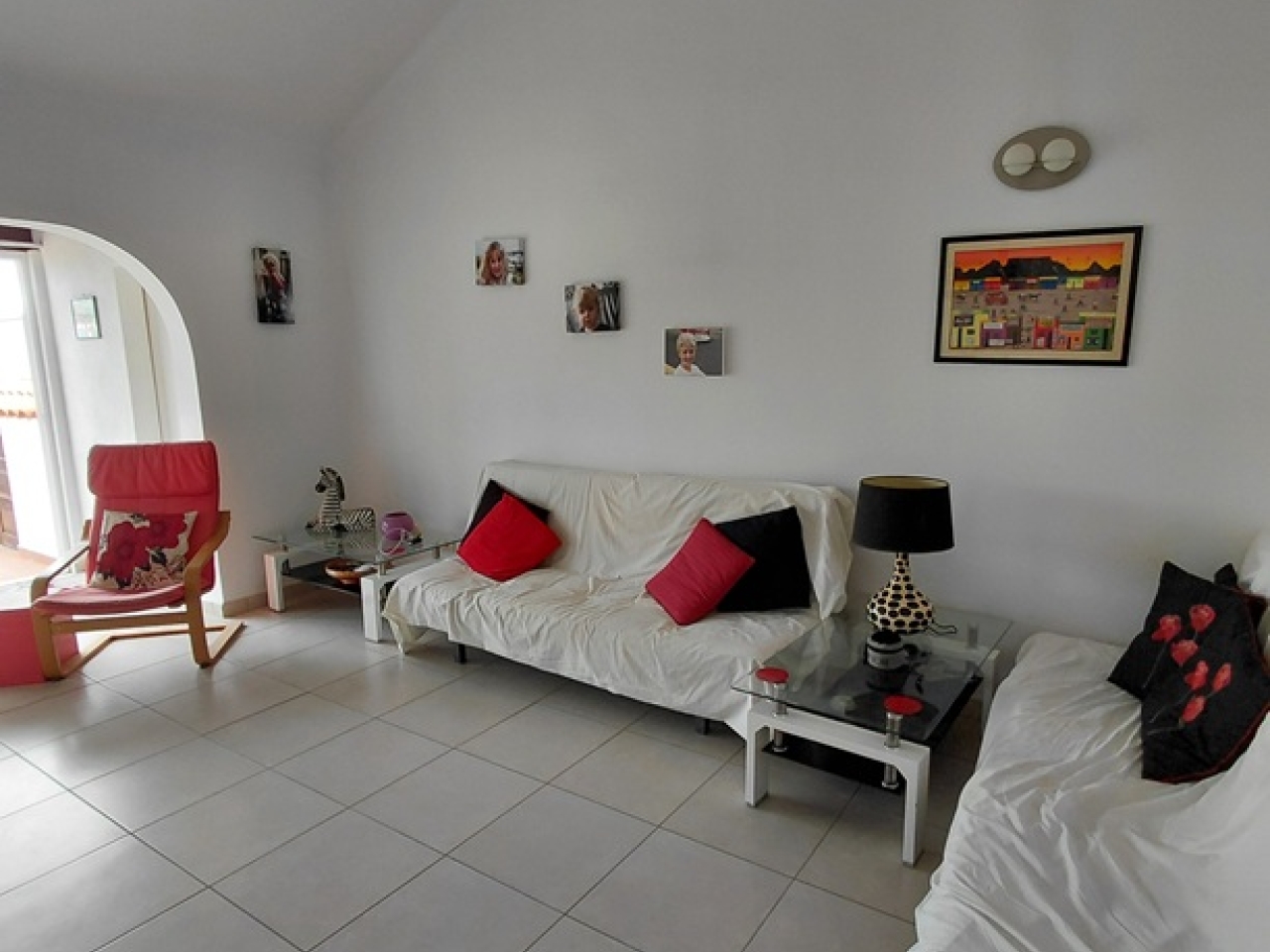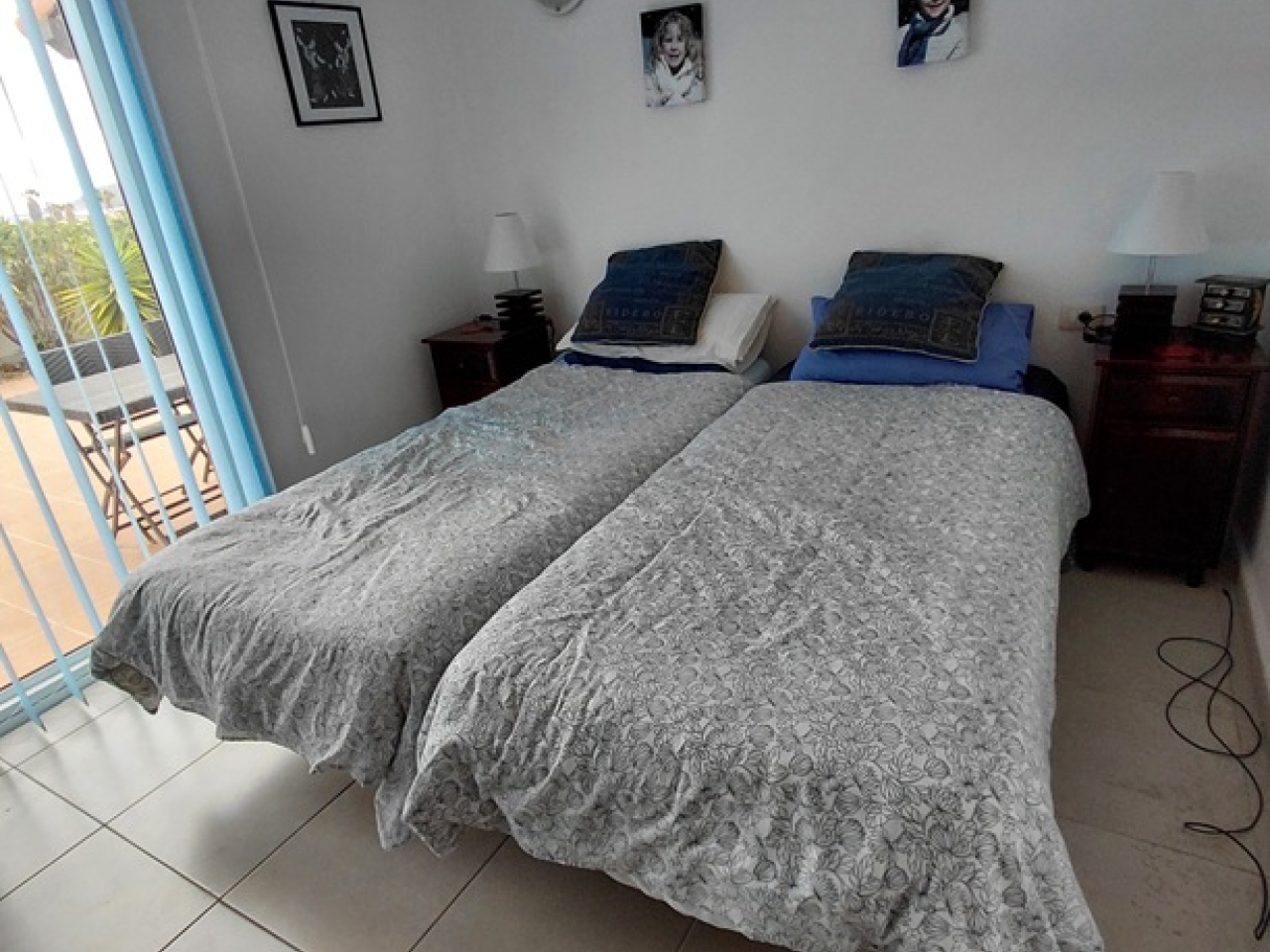 Spacious, two bed, two bath villa with large family kitchen /diner. Good sized gardens front and rear and an additional terrace giving excellent golf and Montaña Roja views.